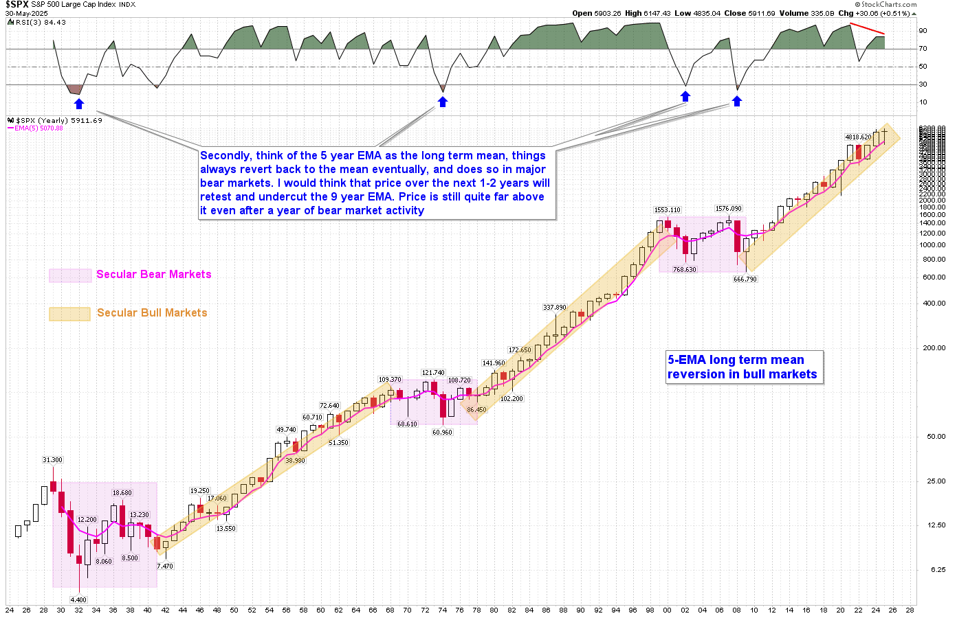 S&P 500 Secular Bull/Bear Markets, 5 year EMA, RSIO