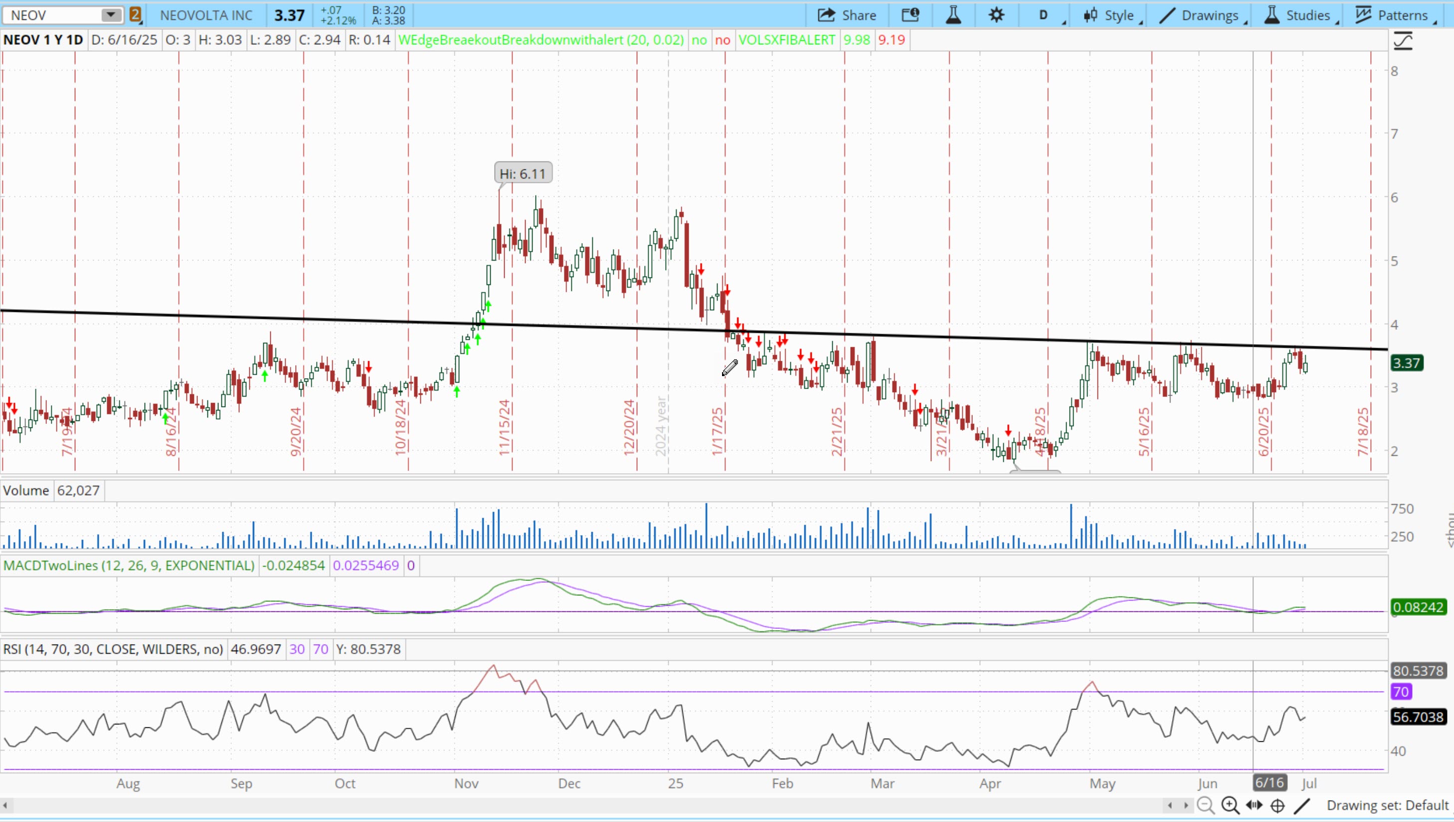 An old one i was watching, double tap on the trend line. Volume is lackluster, as well as MACD.