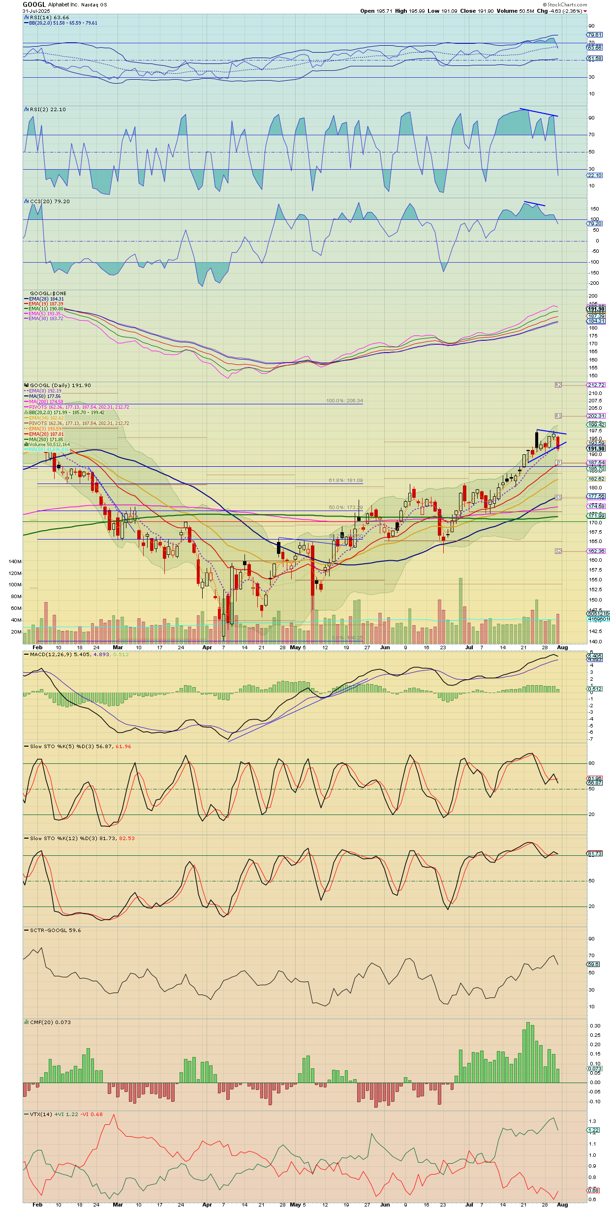 TSLA chart not looking good. GOOGL closed below the 8ema.