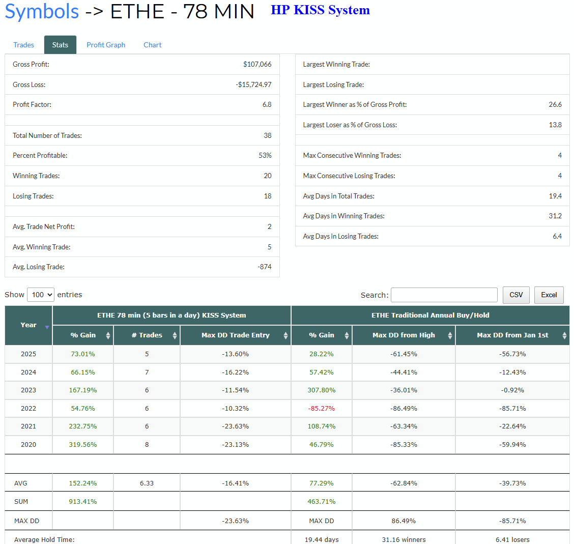 Hey Matt, I noticed ETHE was added to the high performance kiss systems. Grayscale created a mini ETF version with ticker ETH with an expense ratio of only 0.15%. ETHE's expense ratio is 2.5% if you are able to switch that one. I'm personally going to sell my physical ETH crypto and move to ETH ETF once I'm in long term gains as I don't feel it necessary to own the crypto itself anymore.