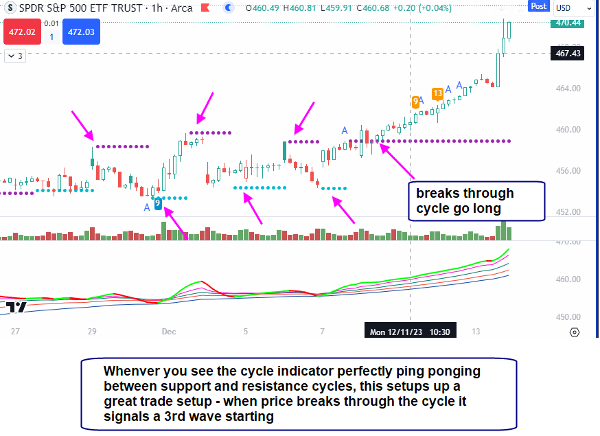 it's like you see in the graphic, where when price blows through a resistance cycle then you get a pullback in price and a buy cycle, often times that's a 4th wave