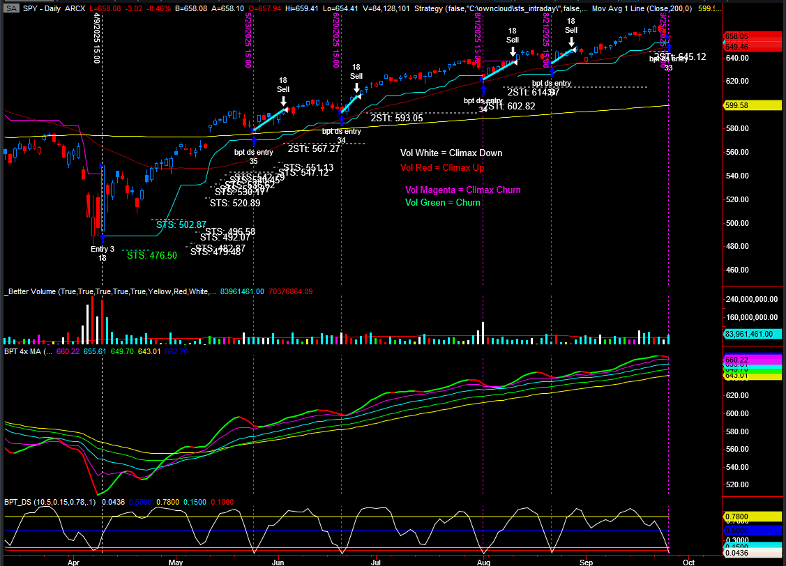 QQQ KISS and SPY daily - those DS trades triggered