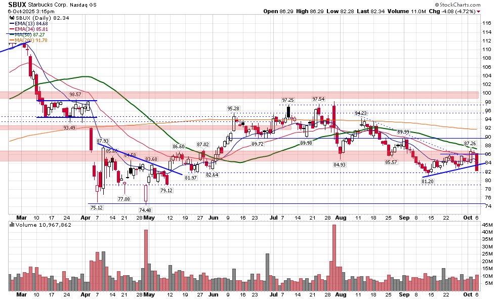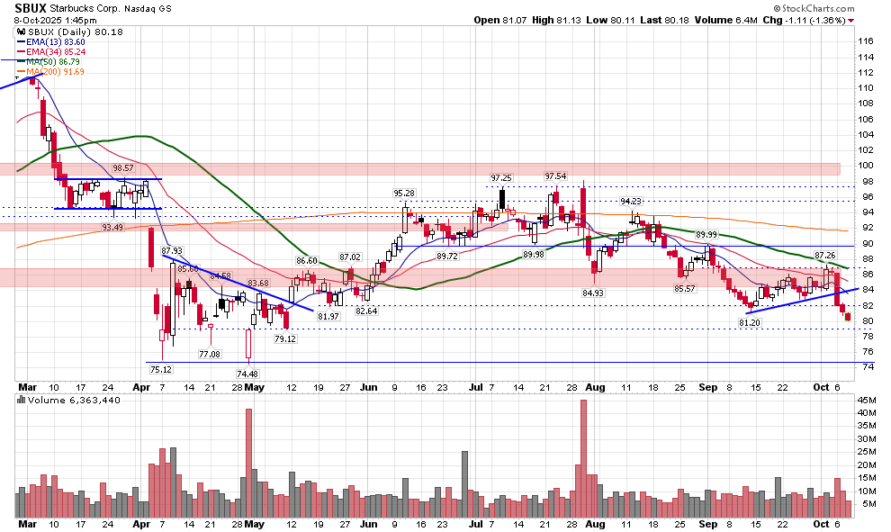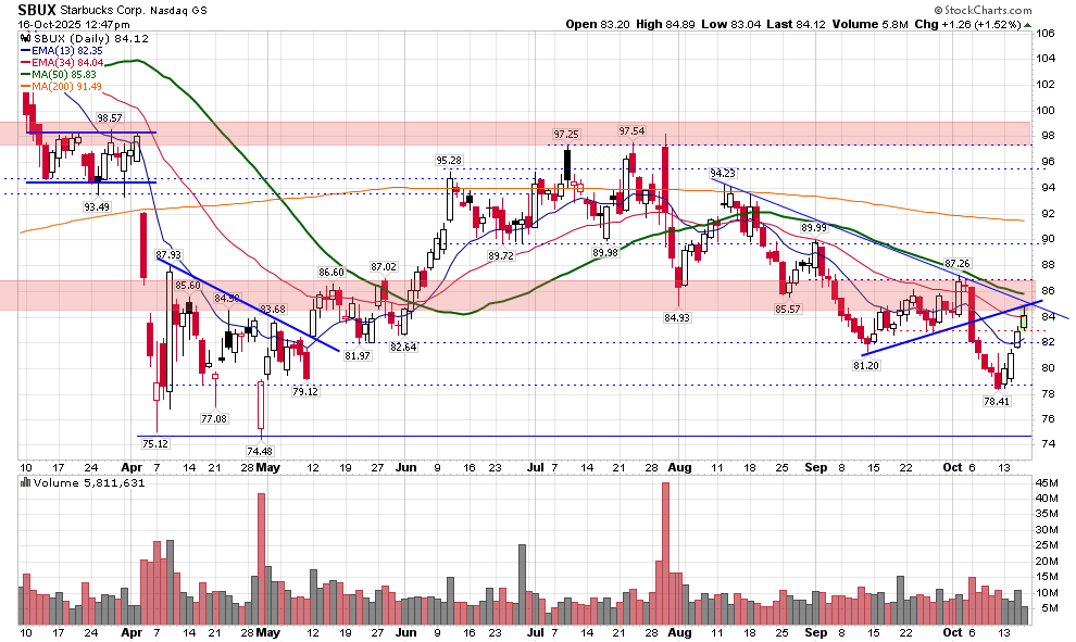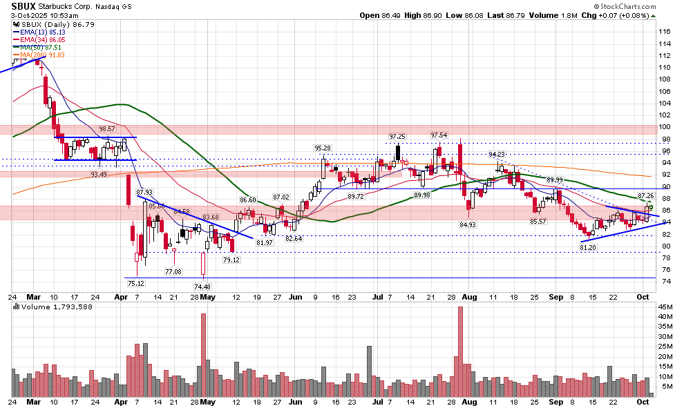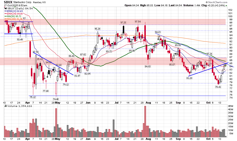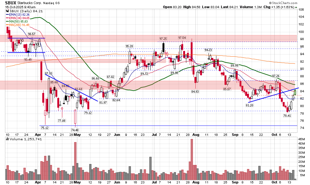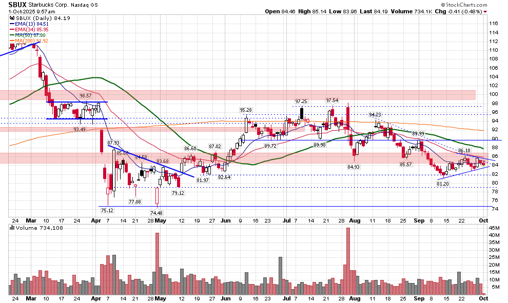 SBUX - Announced a Div increase yesterday ... but still stuck under the 50dma