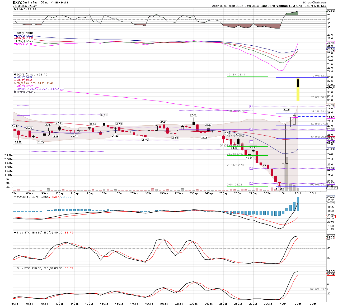 DXYZ- Took an entry at the 23.5 ret on the pullback, tight stop. Valuation on this one seems very opaque. Long term chart looks interesting though. Like to see more volume come in today.
