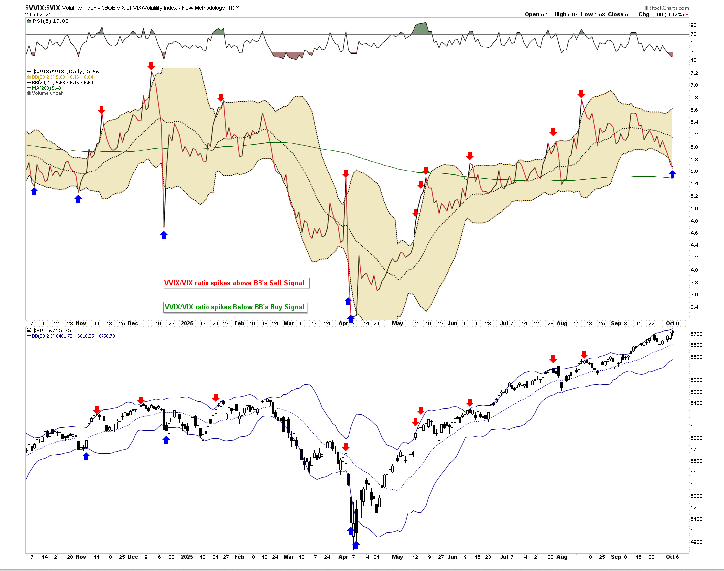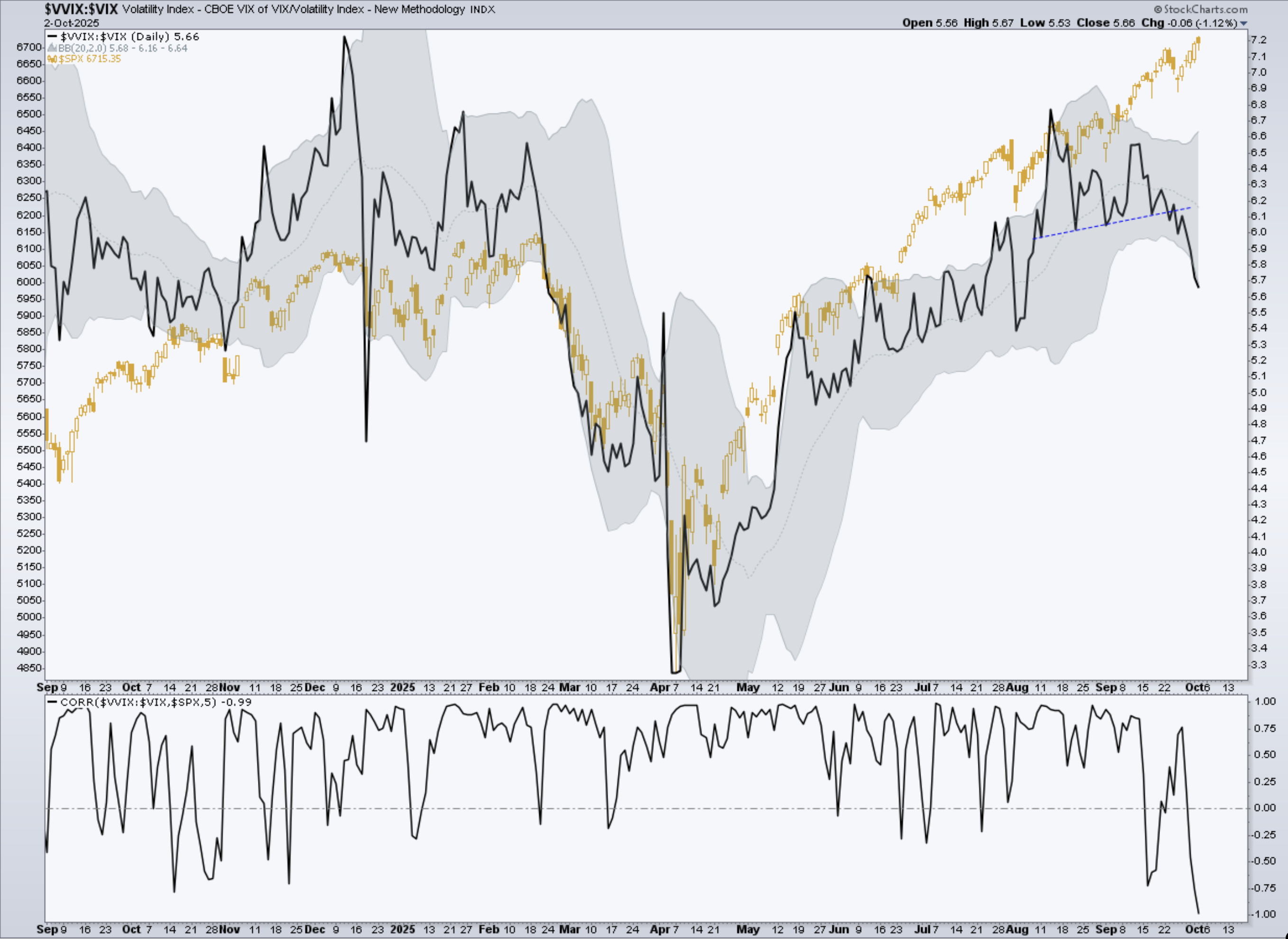 I think this is also why we are seeing things like VVIX/VIX ratio below the lower Bollinger Bands for a buy signal - normally that occurs after a pullback not at all time highs - this is probably a reflection of the uncorrelation VIX