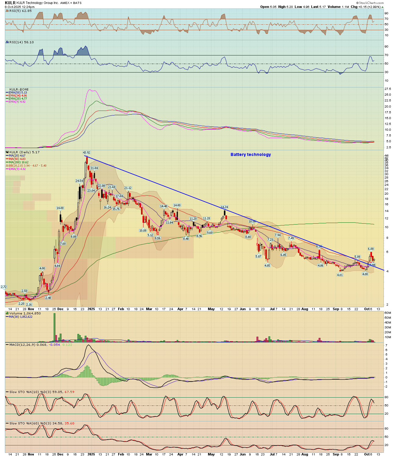 KULR - Chart Link- after a nice initial move from the trendline break, pulled back to 50 day MA finding some supper there