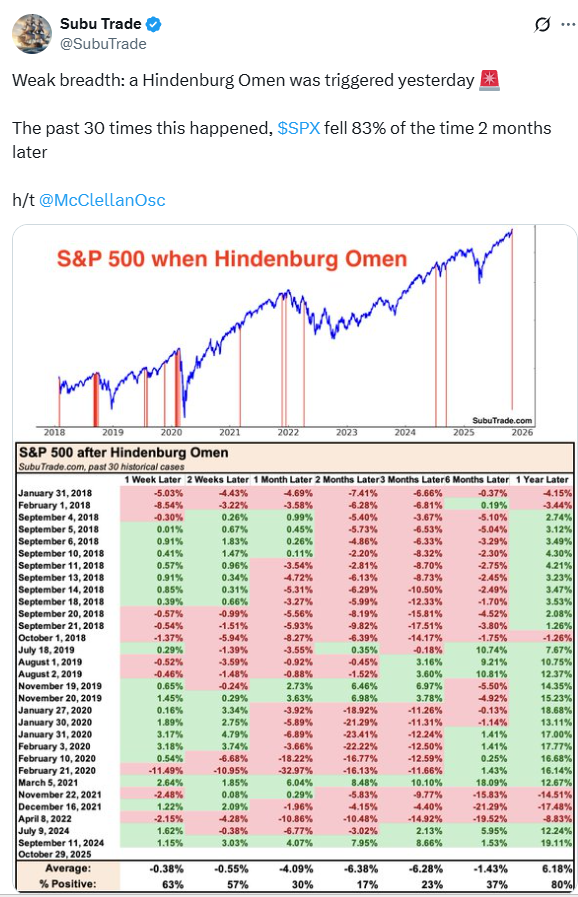 Subu Trade Stats on Hindenburg Omen