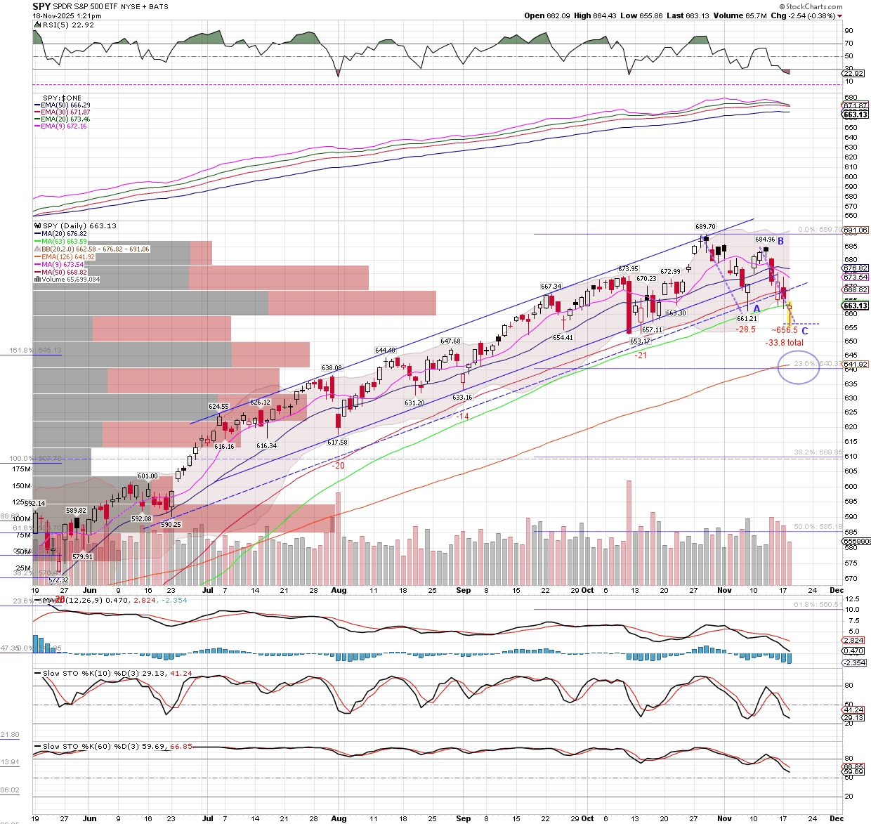 From the October high, we appear to have hit a symmetric A-B-C move on SPX thus far