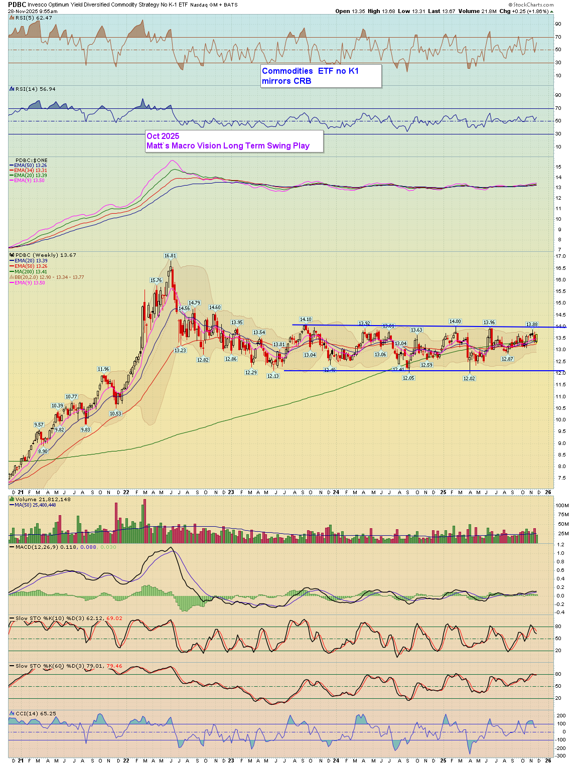 Commodities PDBC Weekly - Invesco Optimum Yield Diversified Commodity Strategy No K-1 ETF - Chart Link