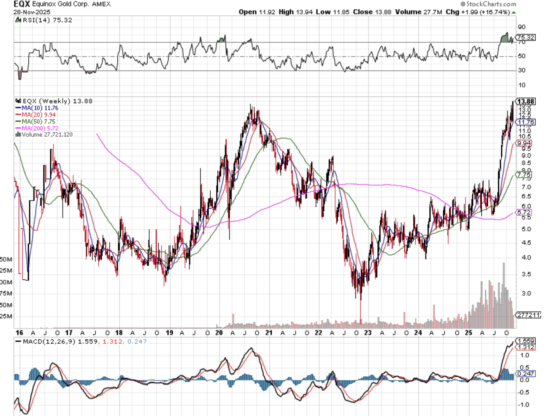 EQX , above demand zone from 5 and half years ago.