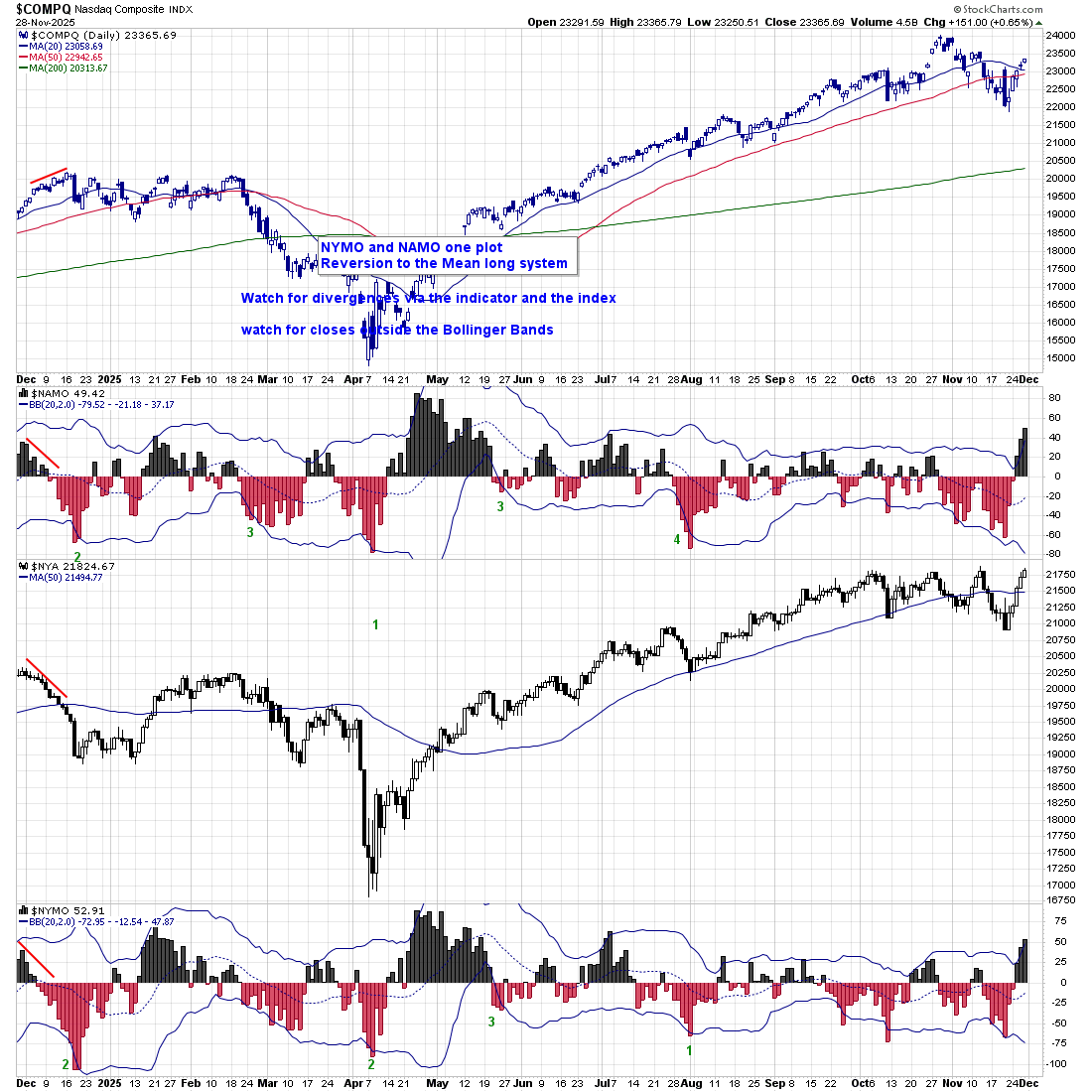 NAMO and NYMO as one plot - Chart Linkthe NAMO has been above its upper Bands for 3 days, and NYMO 2 days
