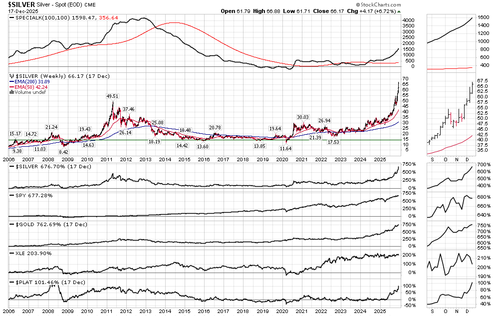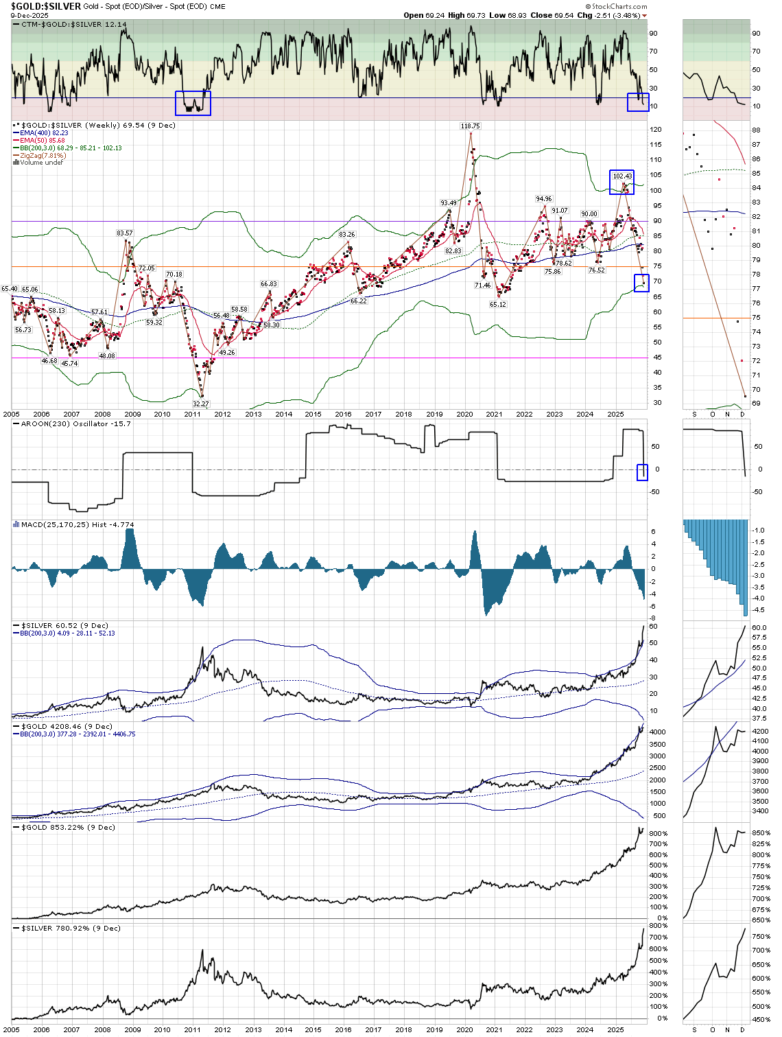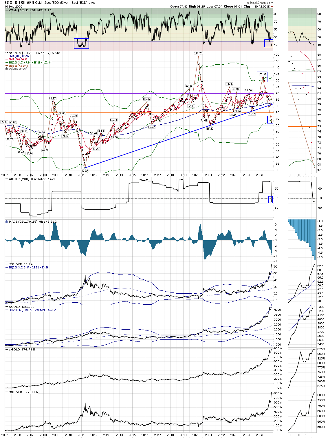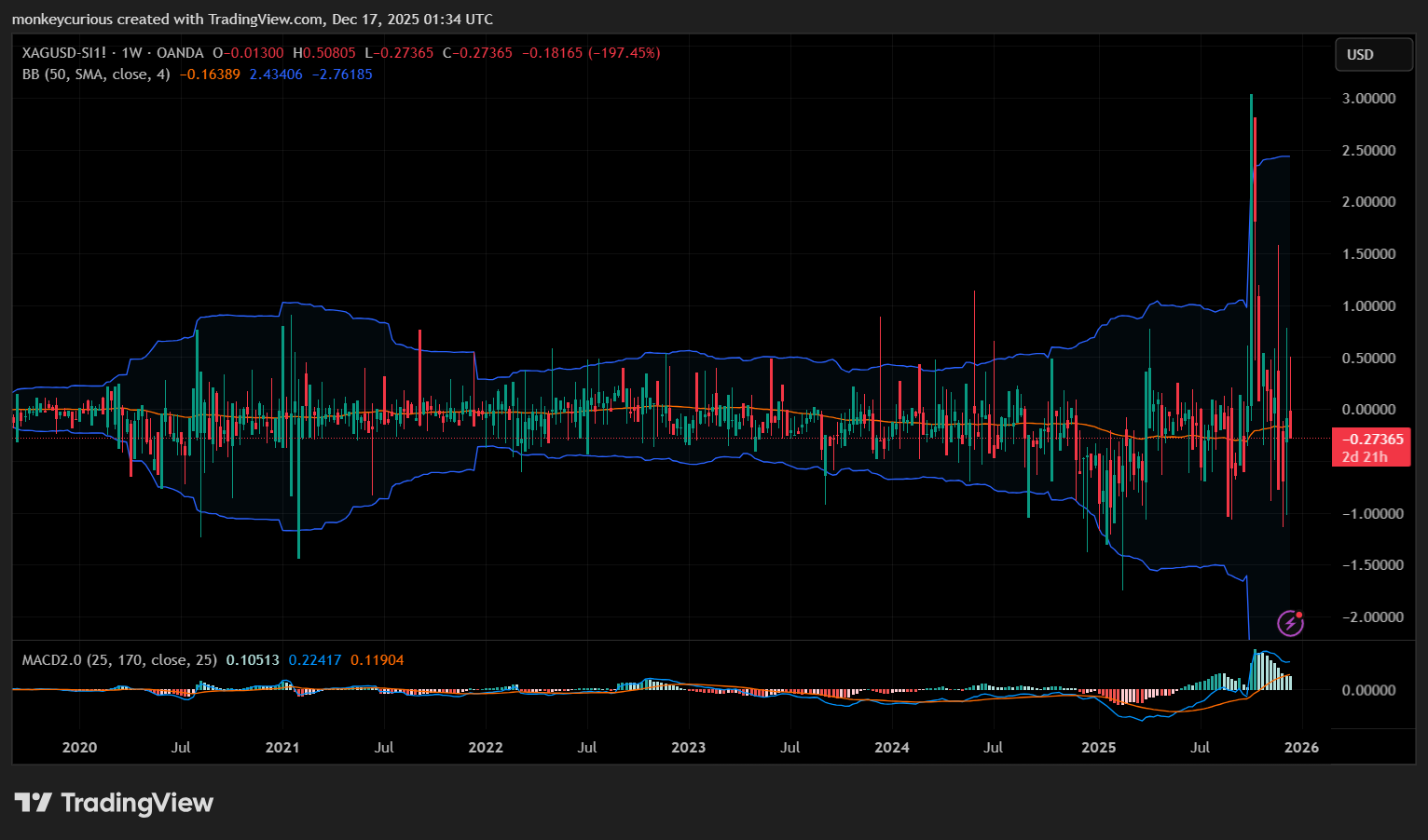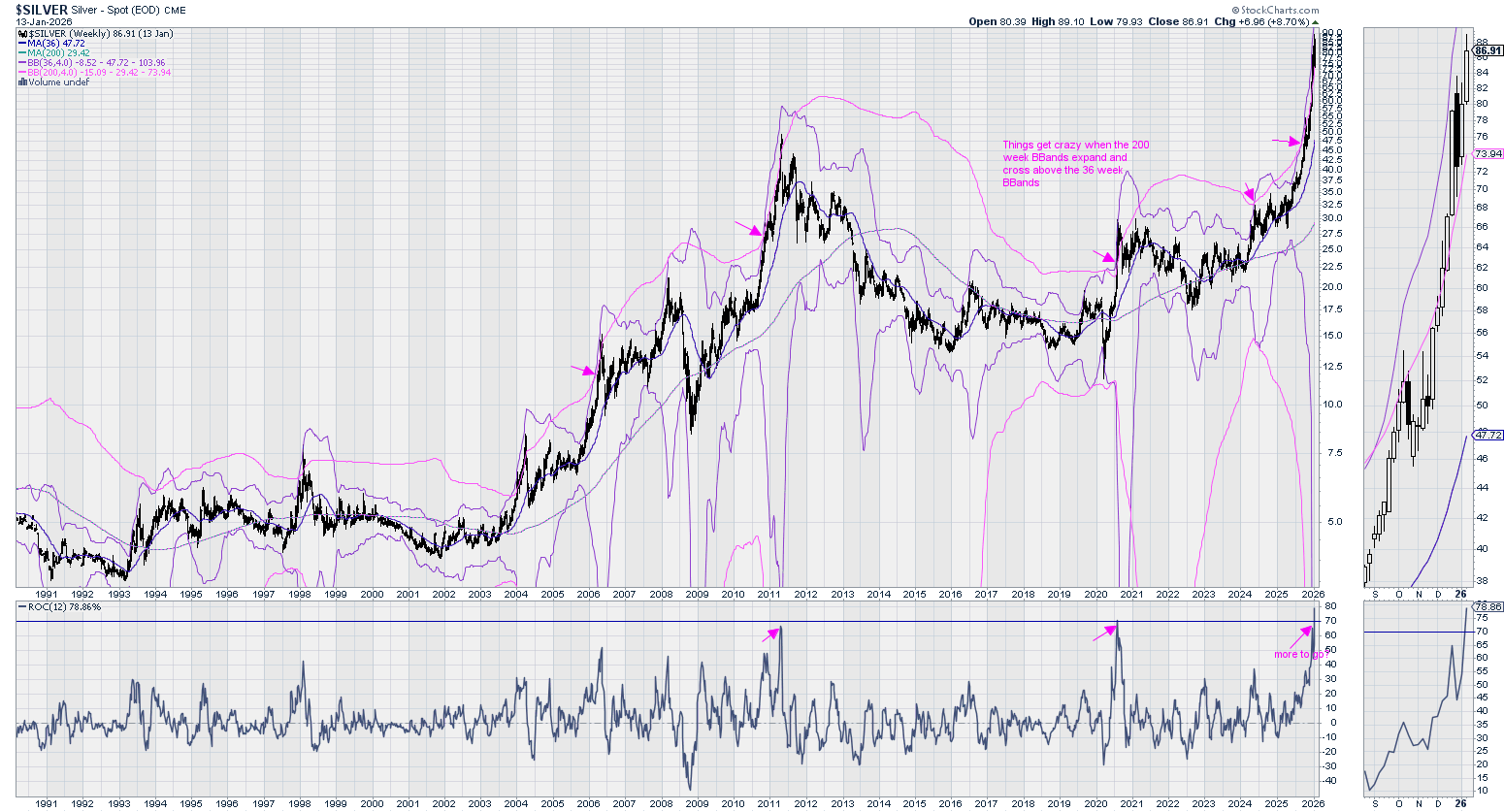 Silver can get. It has 36 Week Bollinger Bands and 200 Week