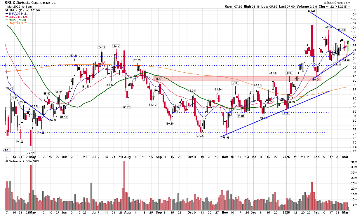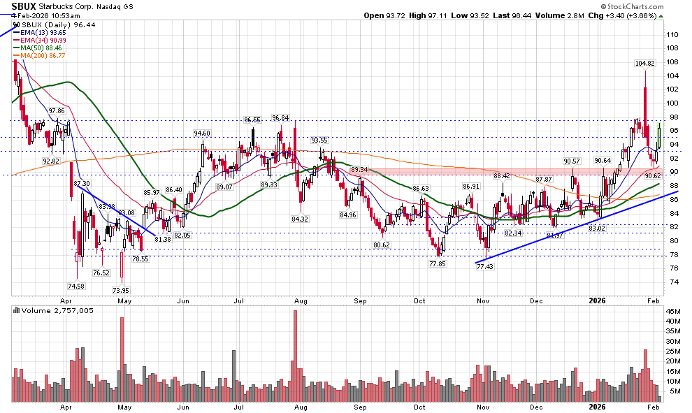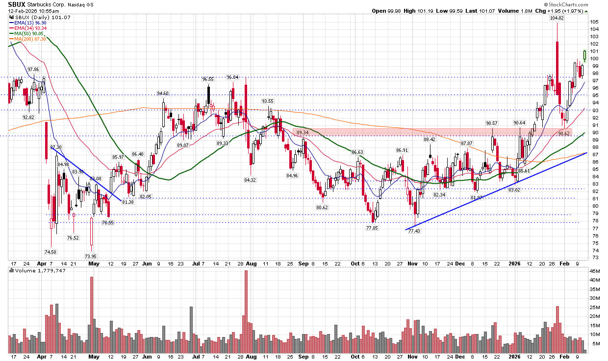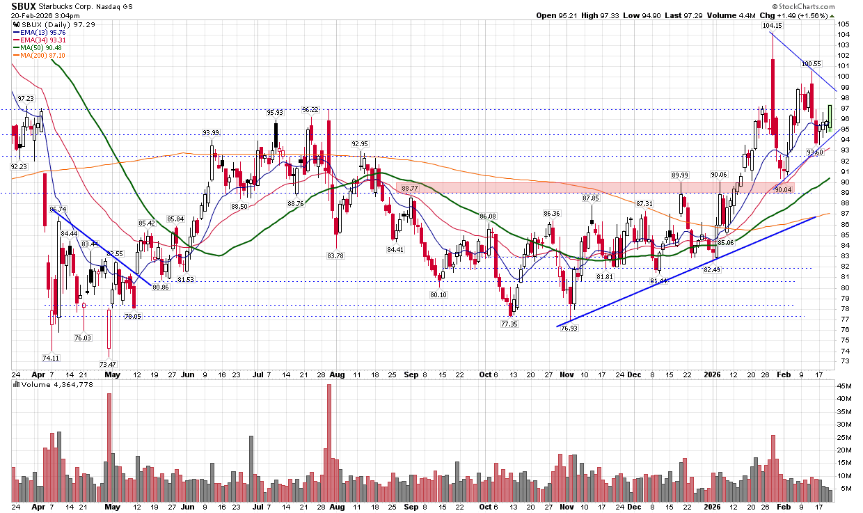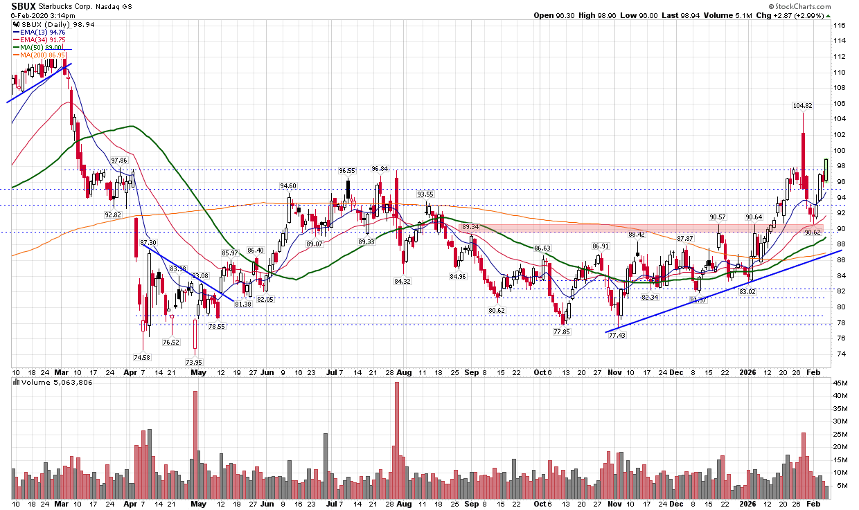 Starbuck’s new reward program sucks and may drive away loyal customers and show up in future earnings IMO, as a long time SBUX trader and customer.