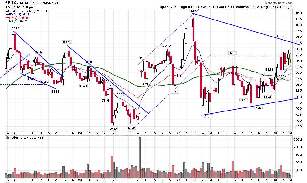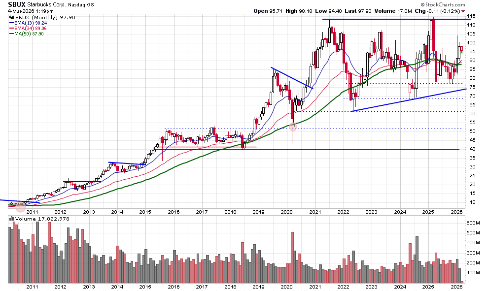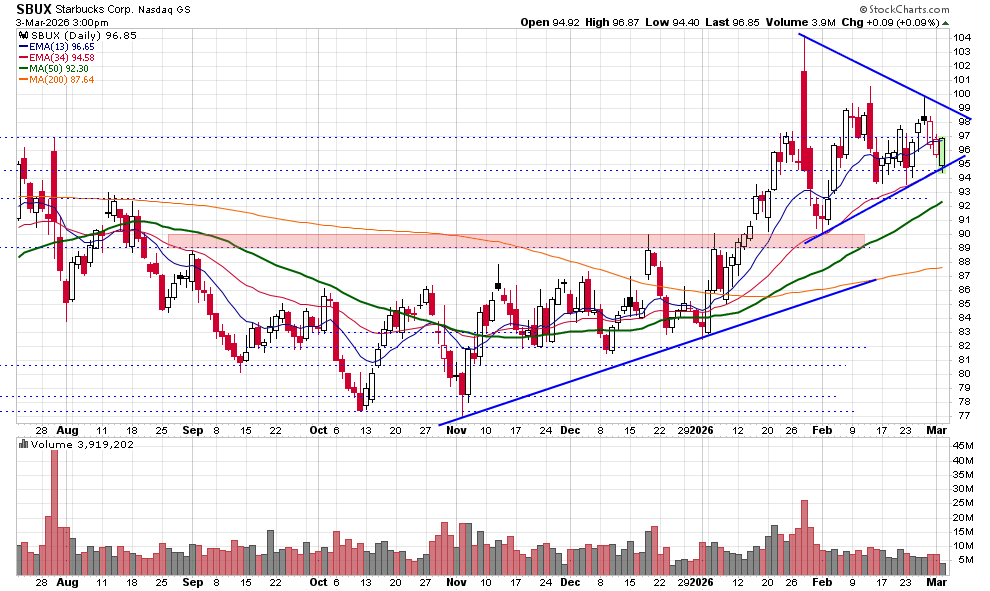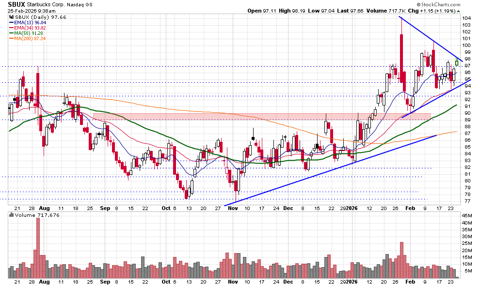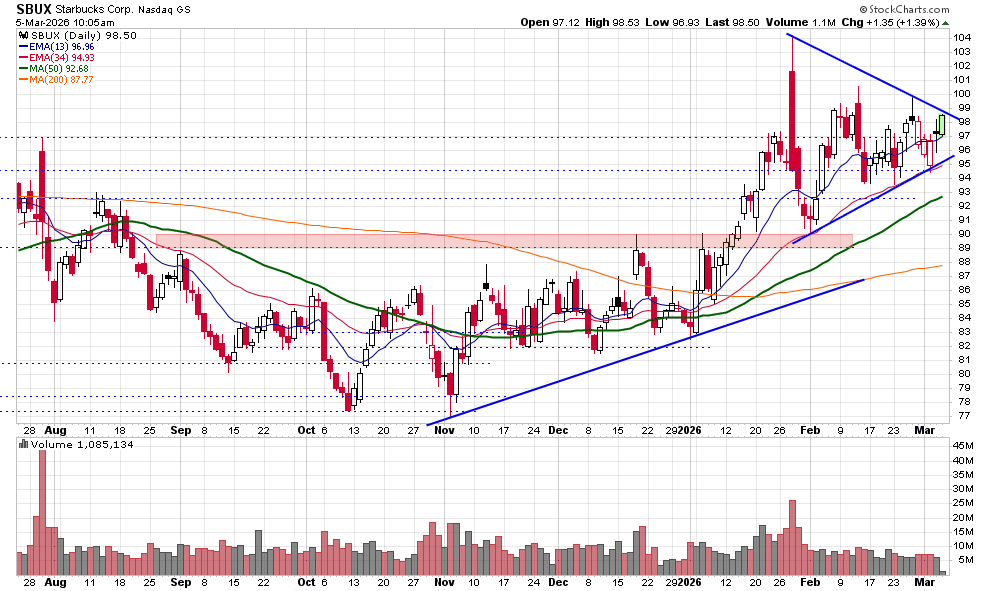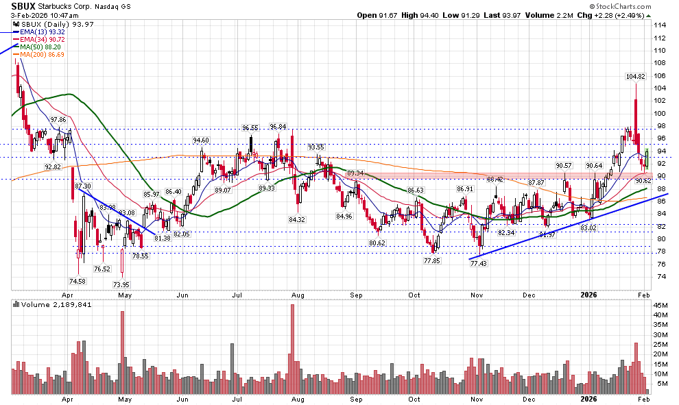 Starbuck’s new reward program sucks and may drive away loyal customers and show up in future earnings IMO, as a long time SBUX trader and customer.