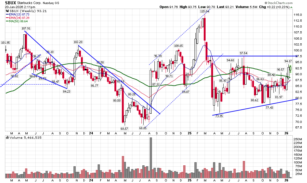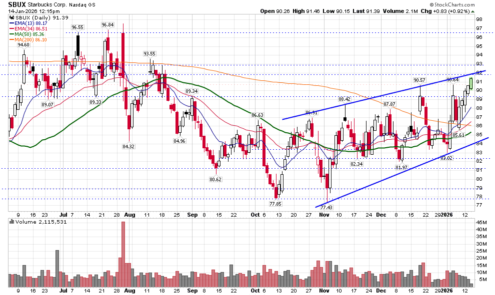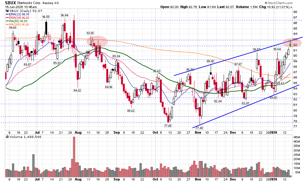 SBUX ... That horizontal resistance won't be easy to crack ... Reports on Wednesday