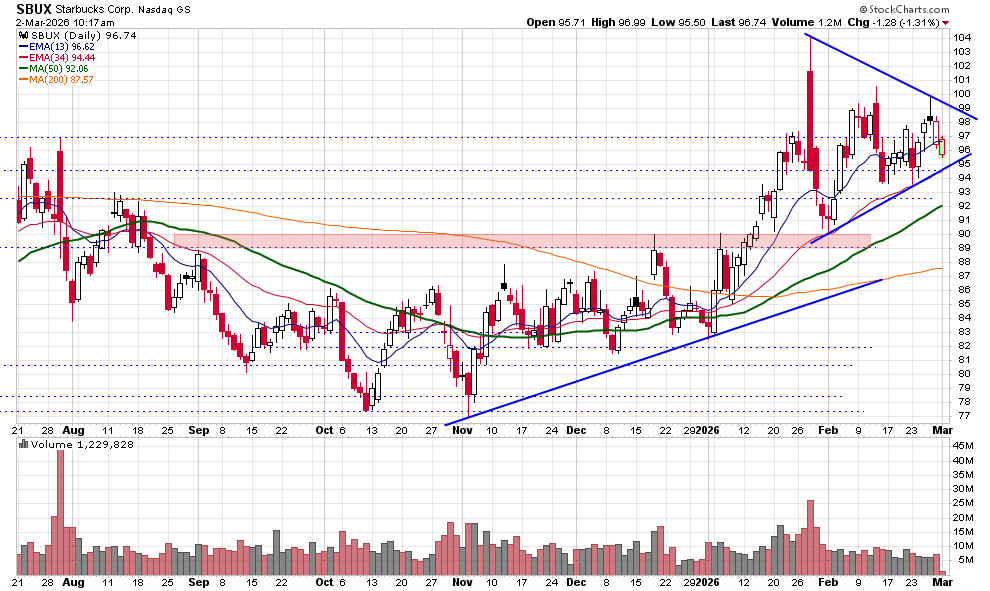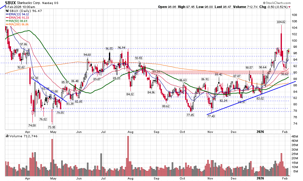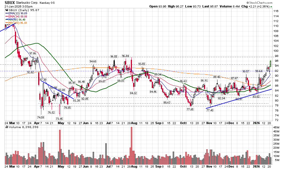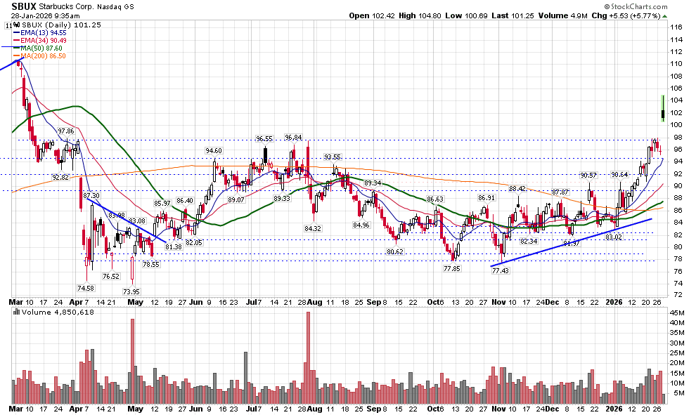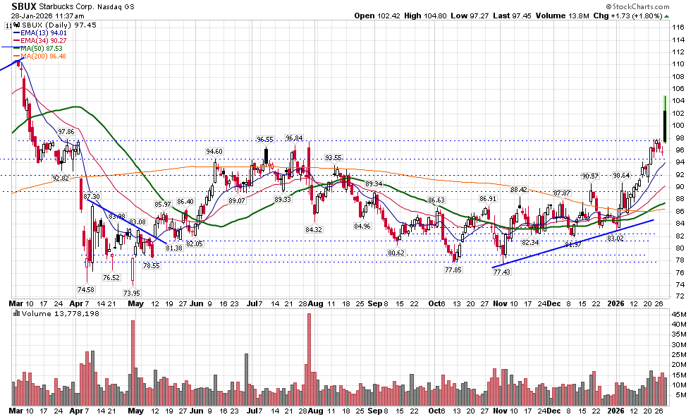 SBUX ... wasn't expecting it to push through the 96/97 area so quickly ...
