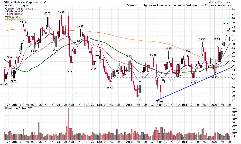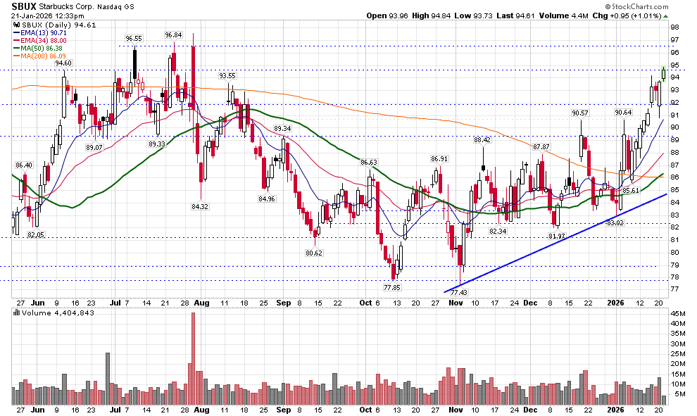 SBUX ... Hard to believe a stock in this sector is acting so well in this environment ... FYI ... reporting on Jan 28th