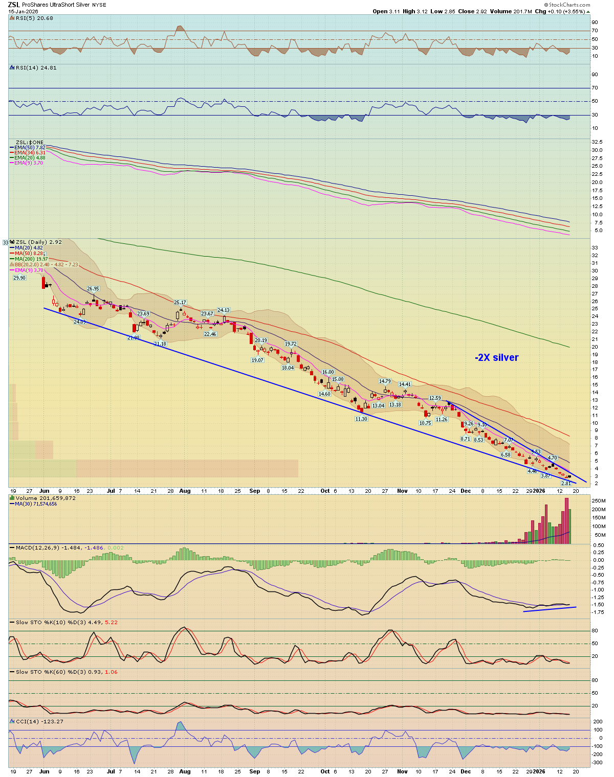 ZSL daily - ProShares UltraShort Silver - Chart Link