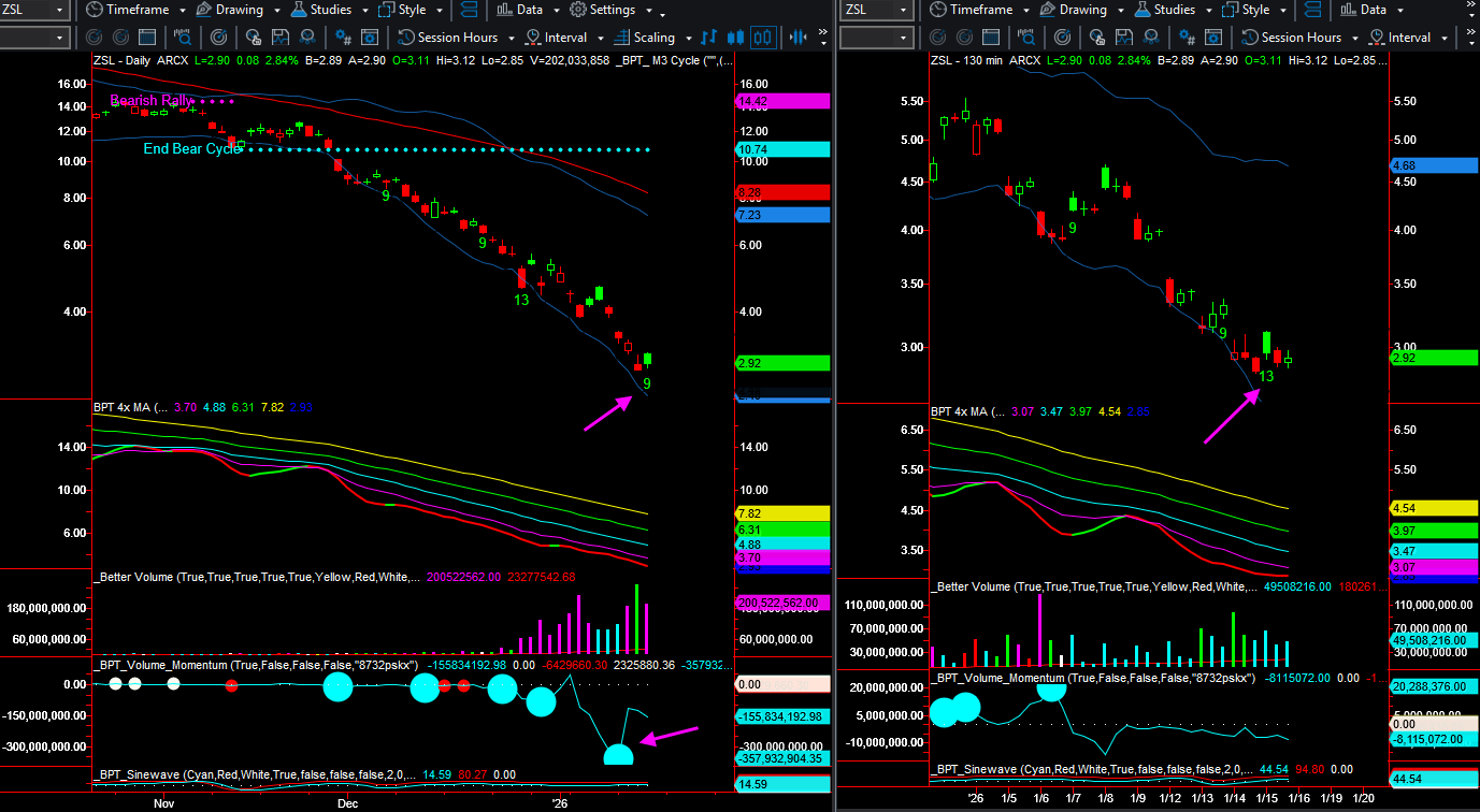 some other ZSL charts, Demark 9 and 13, and some divergence on the volume momentum