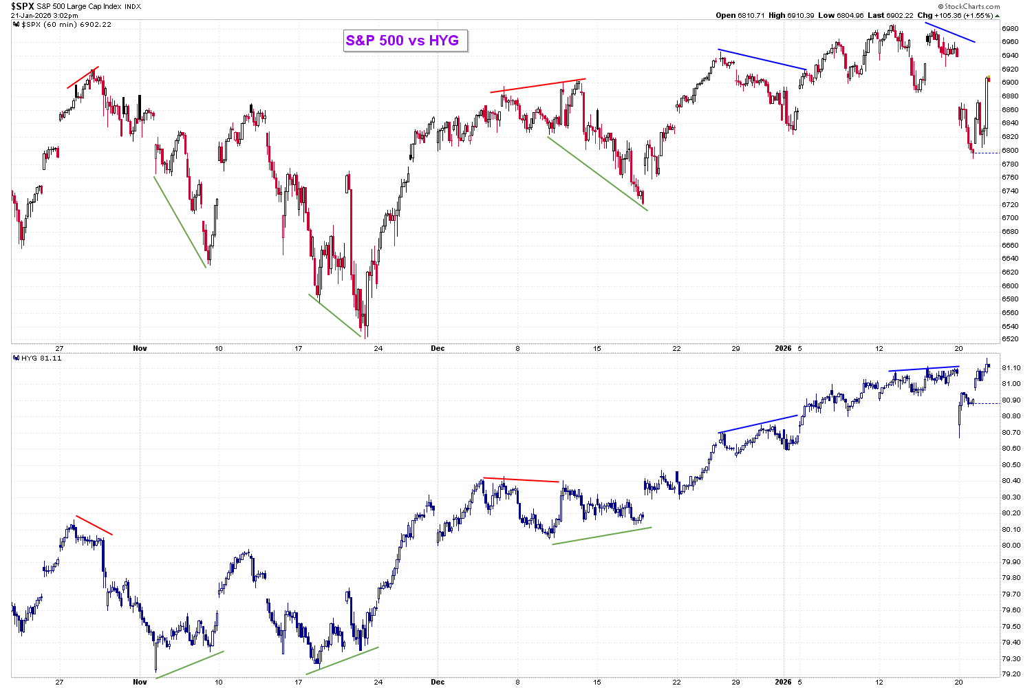 Compare - SPX vs HYG 60 min - Chart Link