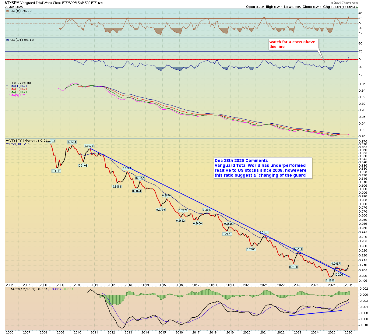Matts Macro World VT:SPY monthly log - Chart Linklook at the ratio, look a the RSI 50 etc