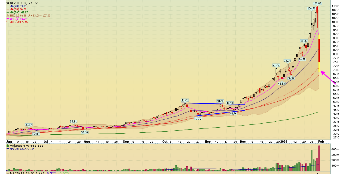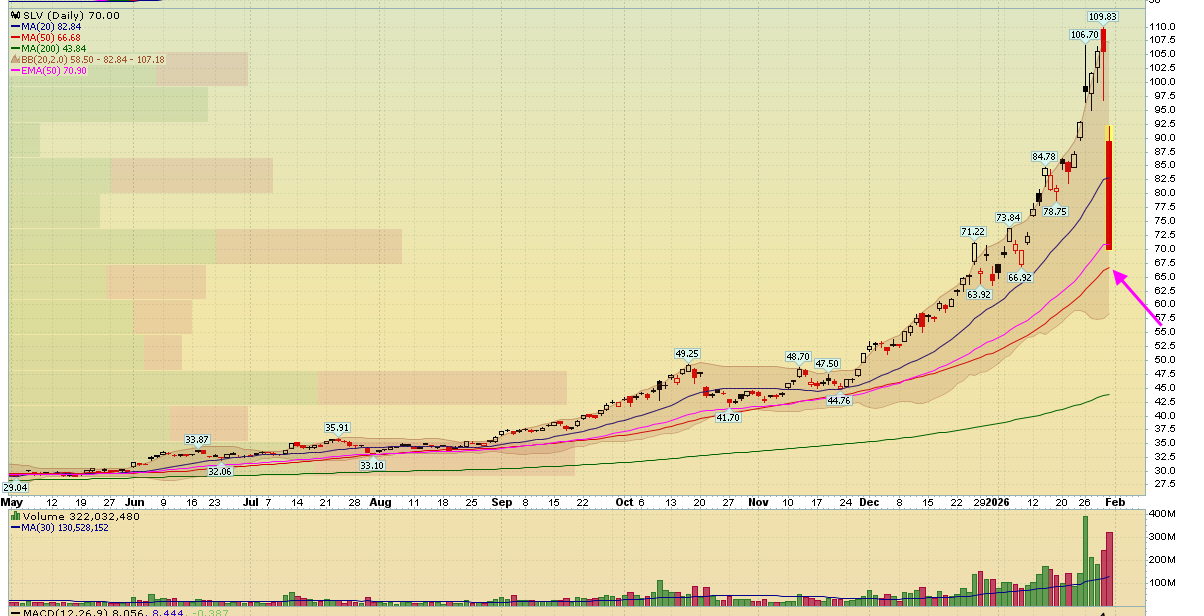 did anyway happen to take a shot and buy some SLV on that pullback earlier? I did, while it didn't quite tag the 50 MA, it was below the 50 EMA, and as you know while you will never pick the exact top, you also won't pick the exact bottom, so don't try, close enough is fine