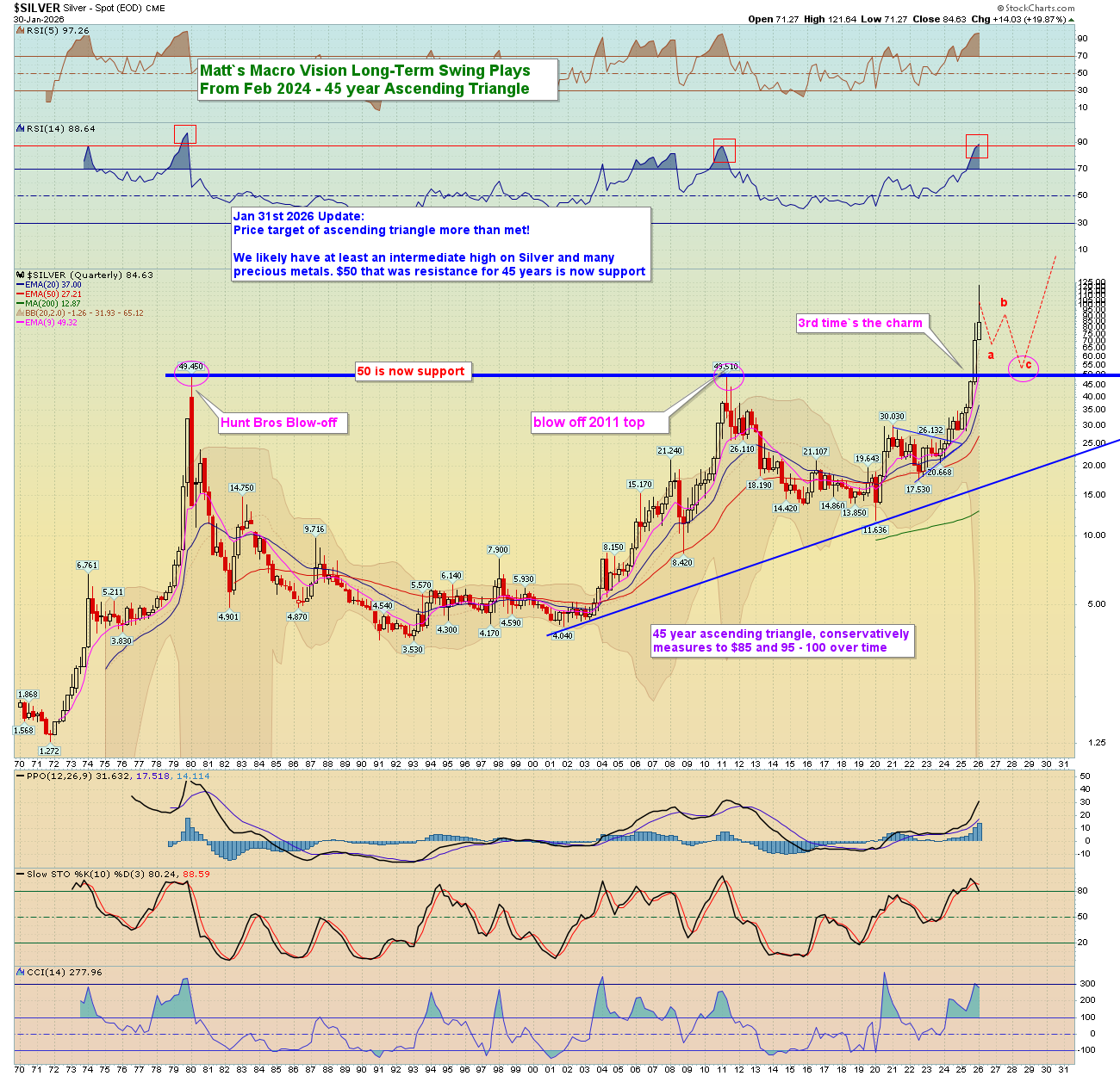 Matts Macro Commodity Precious Metal SILVER Quarterly 50 year Log Chart - Chart Link