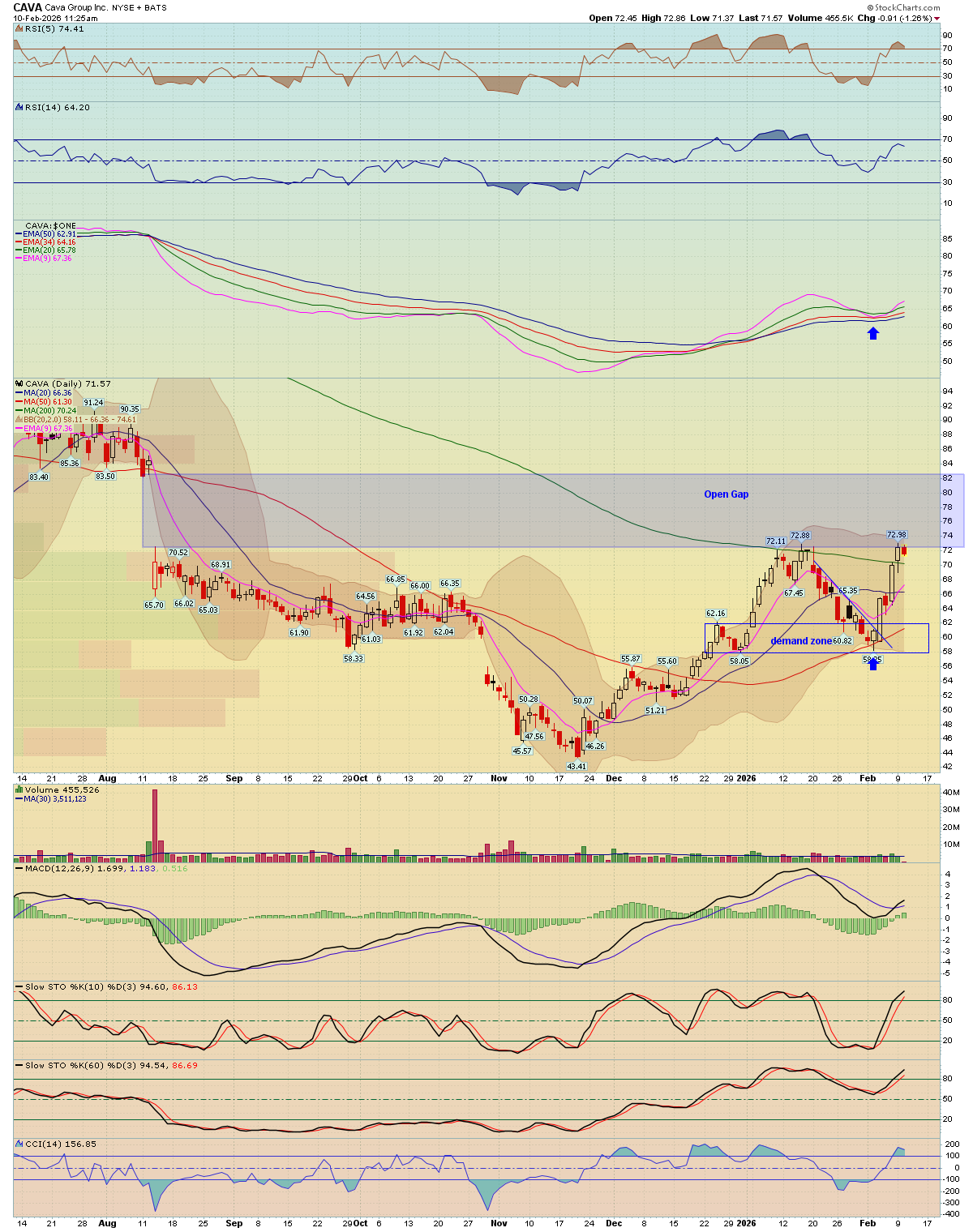 CAVA - Cava Group Inc. - Chart Linkbeen a nice swing, pausing at some resistance but overall looks fine