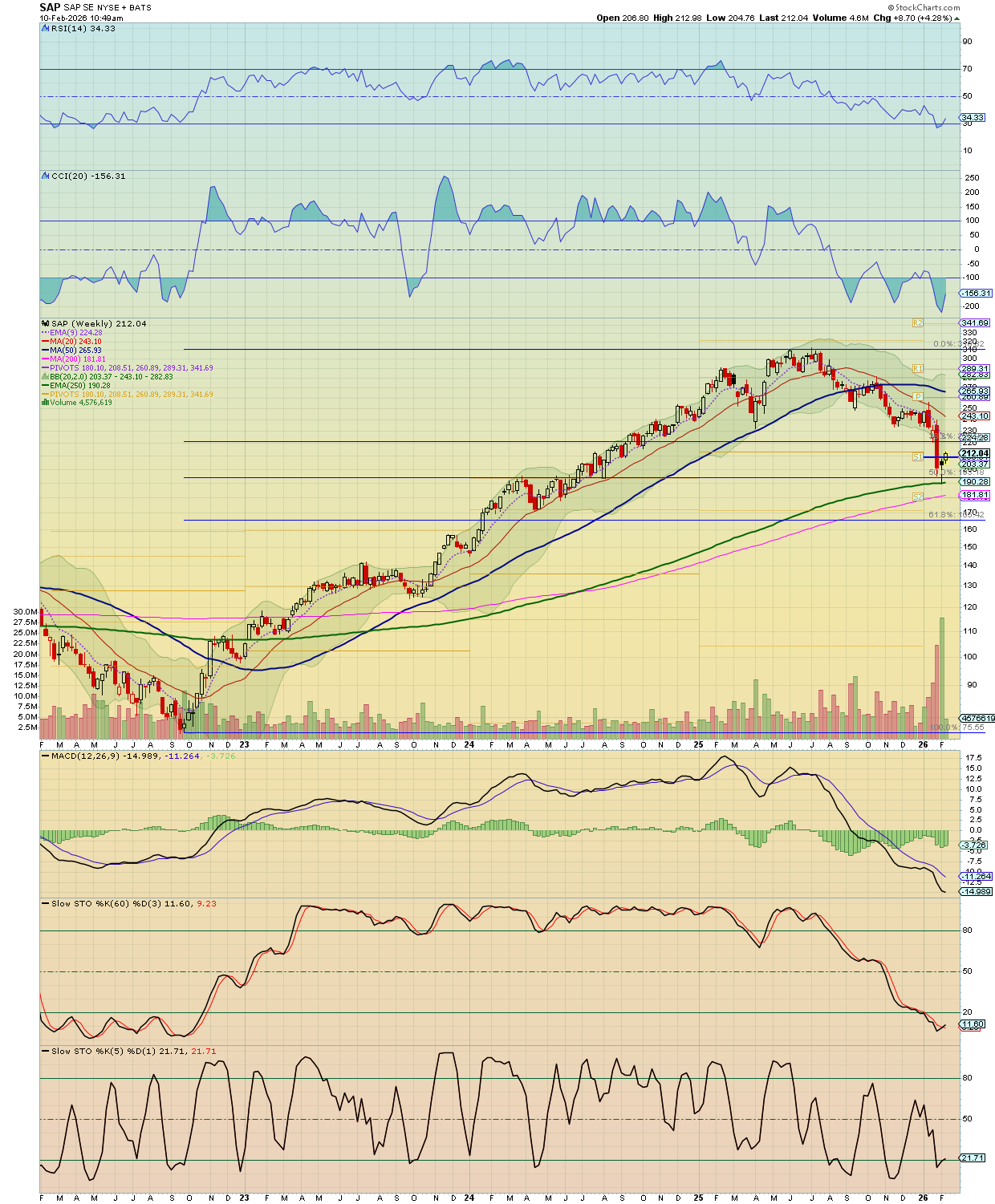 SAP - Bounced off 250ema and 50% fib on Weekly Chart.
